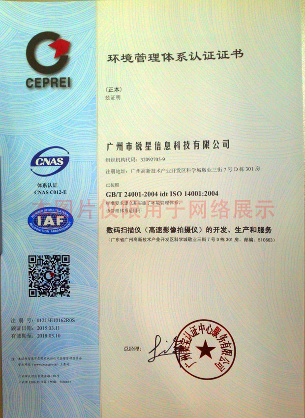 環境管理體系認證證書-銳星