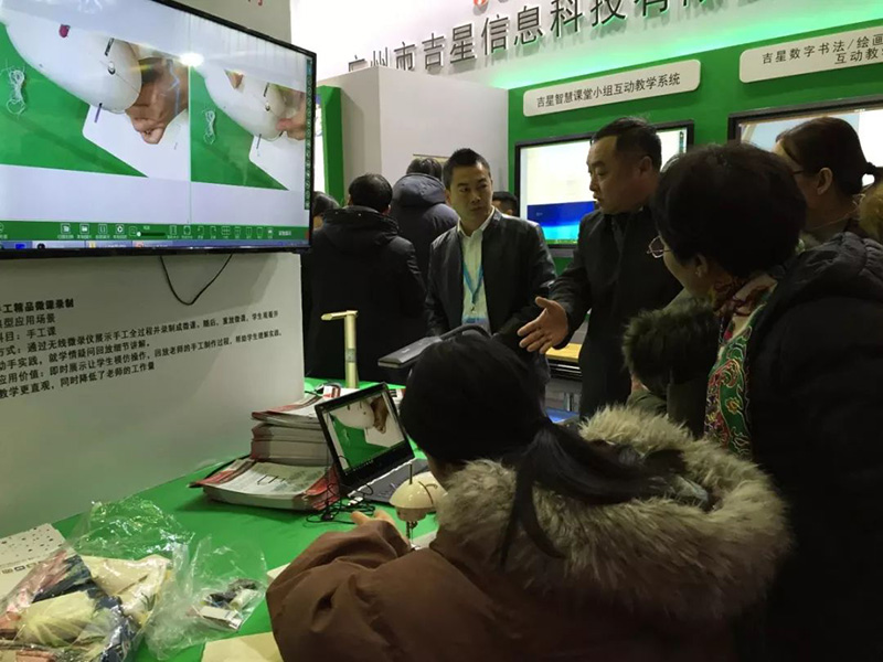8日剛開展不久,吉星展區(qū)即爆滿,吉星智慧課堂產(chǎn)品吸引了全國各地的教育部門及學(xué)校領(lǐng)導(dǎo)等前來參觀、交流。