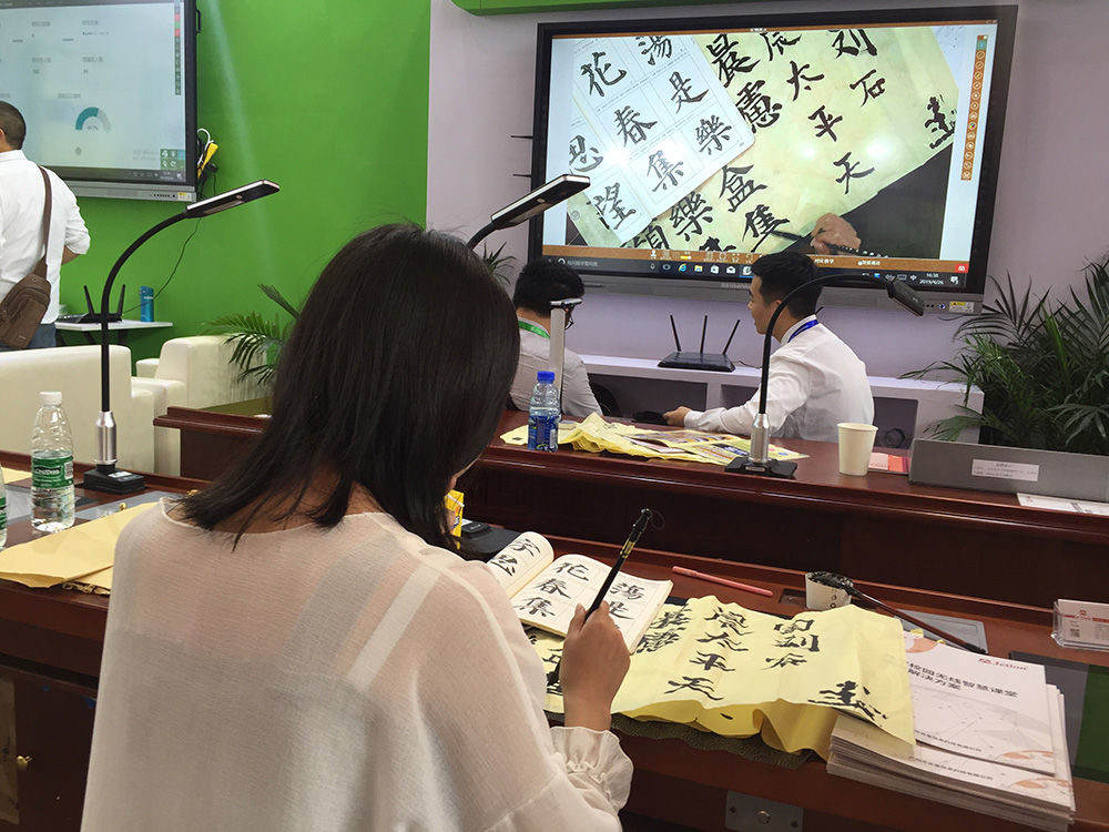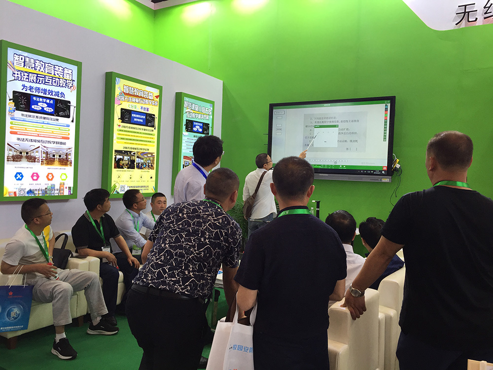 引人注目的三款新品分別為智慧校園整體解決方案、實驗室互動及模擬考試、書法繪畫無線互動教學(xué)解決方案