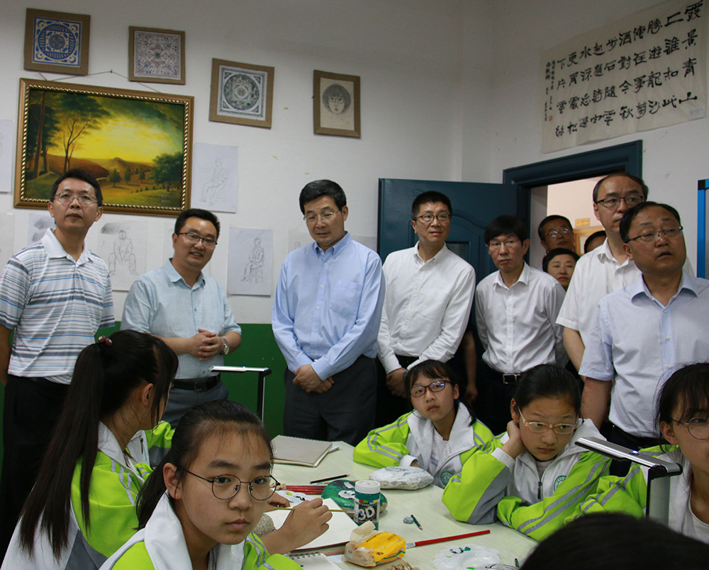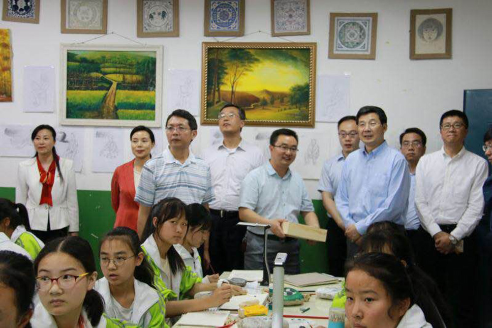 ▲中央宣傳部副部長、中央網(wǎng)信辦主任莊榮文參觀吉星未來美術(shù)教室