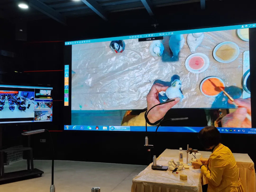 吉星強(qiáng)交互專遞實(shí)訓(xùn)室支持遠(yuǎn)程實(shí)訓(xùn)過(guò)程展示,不受距離和空間的限制,能夠?qū)崟r(shí)傳輸美術(shù)相關(guān)專業(yè)的教學(xué)內(nèi)容,如繪畫手法,顏色調(diào)配等操作,讓優(yōu)秀教師跨校區(qū)、跨區(qū)域教學(xué)不再是難題。
