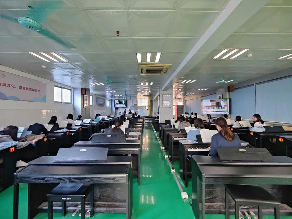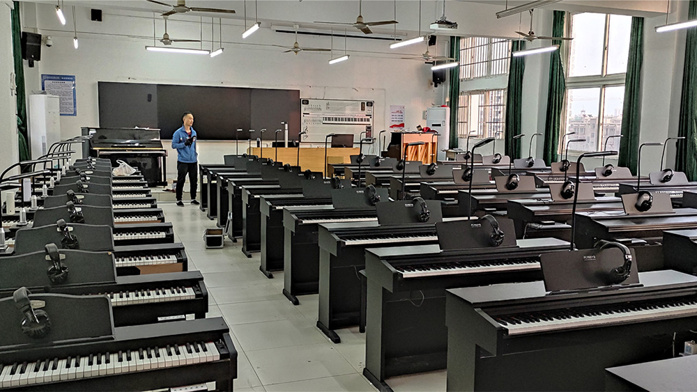 通過無線傳輸,教師的彈奏過程和細節能夠清晰展示在大屏上,全體學生無需圍觀,即可觀看。