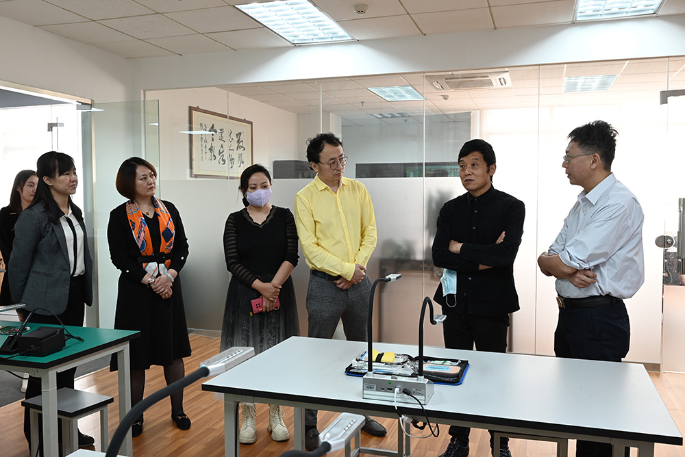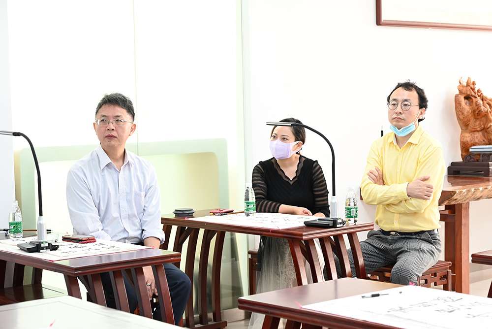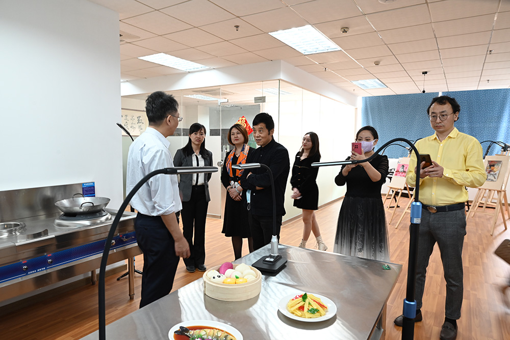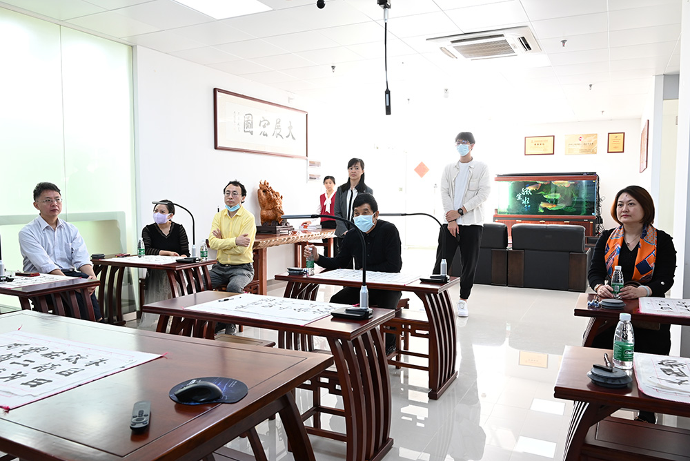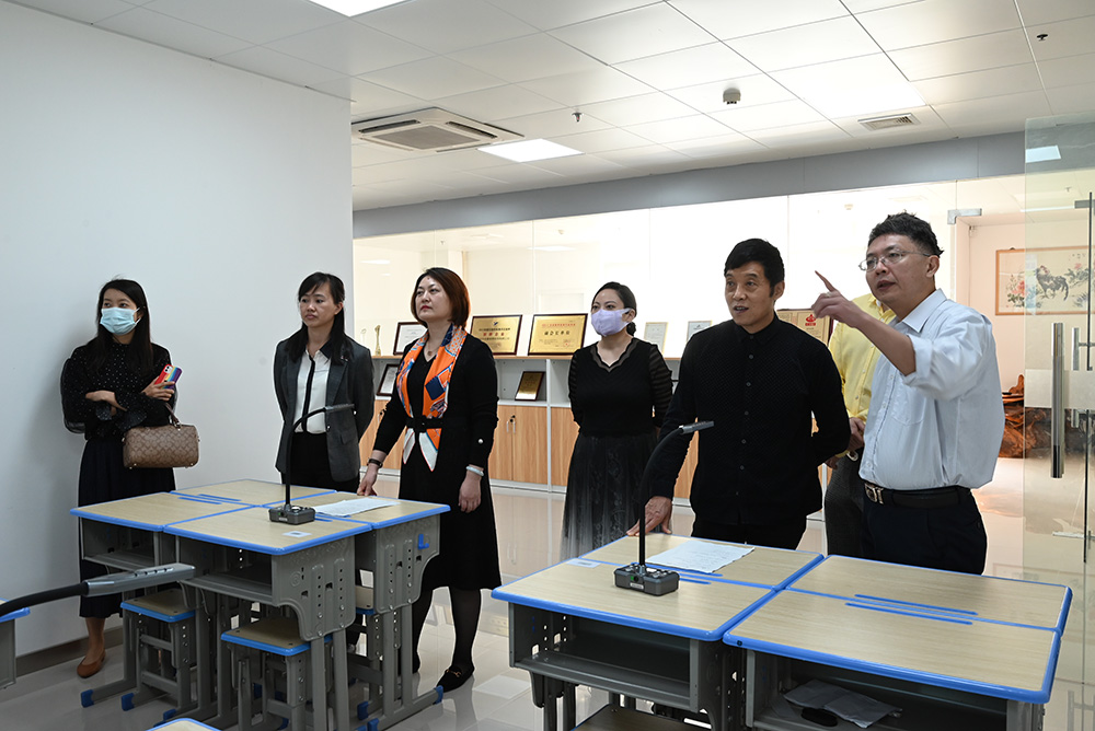 吉星董事長舒華俊全程陪同廣東省教育裝備行業協會王自成會長一行,參觀了結合書法、美術、護理、烹飪等不同學科場景的展廳。