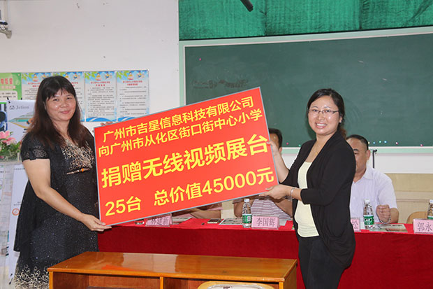 2015年11月18日下午,吉星向廣州市從化區街口街中心小學捐贈儀式在街口街中心小學的多媒體會議室進行。本次捐贈活動出席人員有廣州市教育裝備中心領導、從化區教育局領導及街口街中心小學的校長和全體老師,當天從化區其他中小學校長及教師代表也前來觀禮,現場將近100人。