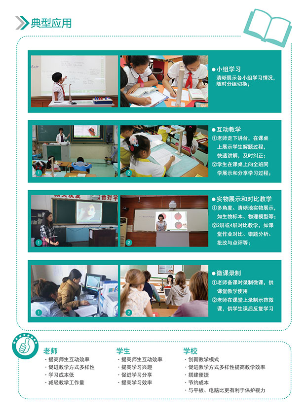 “班班通”電教設備普及是一個事關教育發展的重要戰略決策。把現代教育充分融入學校的教育教學,使之成為常規教學資源和教學手段尋求有效應用機制與模型,提高每一堂課的教學質量,有效解決讓所有孩子上好學的問題。此次廣州吉星企業中標項目,正是“班班通”戰略最堅實的基礎--“通”硬件。吉星無線視頻展臺采用無線WIFI技術,支持筆記本,電腦,一體機,白板,平板,手機等設備無線連接,老師可實現課堂上的移動展示,不受任何位置約束,既可以在講臺上做展示,也可以隨時移動到學生的課桌上做展示,從而輕松實現了師生、生生之間課堂互動的新模式。這必將豐富老師教學多樣性,激發學生的學習興趣,從而全面提升基礎教育教學質量。