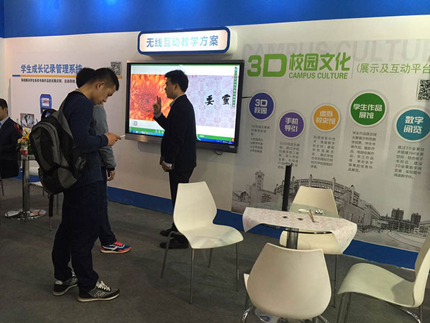 吉星作為國(guó)內(nèi)首家無(wú)線(xiàn)視頻展臺(tái)的制造商,也是現(xiàn)今無(wú)線(xiàn)展臺(tái)的領(lǐng)導(dǎo)者。本次展會(huì)雖然沒(méi)有以參展商的身份參展,但我們自主研發(fā)的專(zhuān)利產(chǎn)品--無(wú)線(xiàn)視頻展臺(tái)在合作伙伴的展位上進(jìn)行了展示。基于無(wú)線(xiàn)視頻展臺(tái)的“展示互動(dòng)課堂”、“展示互動(dòng)書(shū)法教學(xué)”、“展示互動(dòng)實(shí)驗(yàn)教學(xué)”、“微課互動(dòng)平臺(tái)”四大教學(xué)解決方案一經(jīng)亮相,參觀(guān)的老師們都被其高度的互動(dòng)性和便攜性深深吸引,紛紛駐足體驗(yàn)試用。經(jīng)工作人員的詳細(xì)講解,無(wú)線(xiàn)展臺(tái)“高清、互動(dòng)、方便”的特性更是得到一致好評(píng),也非常認(rèn)可“無(wú)線(xiàn)互動(dòng),翻轉(zhuǎn)課堂”的教學(xué)理念。相信這種創(chuàng)新的設(shè)備所帶來(lái)的教學(xué)模式一定能調(diào)動(dòng)學(xué)生積極性,為課堂注入前所未有的新鮮感和創(chuàng)造力!