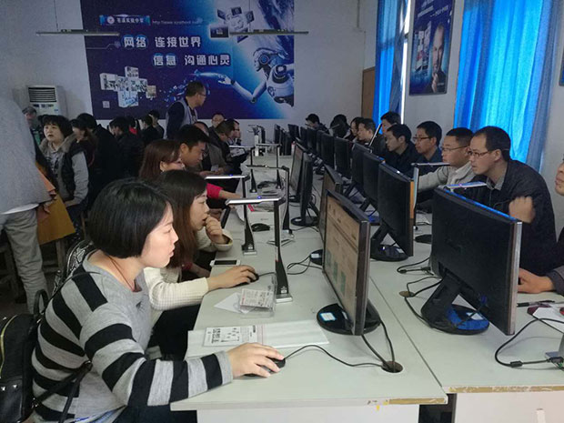 會議在四川省蒼溪實驗中學舉辦,蒼溪縣電教站正副站長,蒼溪縣教育局黨委委員張主任參與會議,并發表關于教育信息化工作的重要指示。全縣150多名骨干老師參加了第一批培訓。培訓會上,技術培訓講師從微課的意義和背景入手,對“微課”進行了講解,幫助教師了解運用“微課”的教學模式,用吉星無線錄制設備演示怎樣制作微課,就如何拍攝、如何制作、如何上傳到微課云平臺、如何組織學生觀看等問題向老師進行了詳細講解。老師們認真傾聽,渴望了解最新的教育信息化手段。培訓完后老師們分兩個微機室進行實踐操作,并不時交流討論使用問題和心得,確保每一位老師都能掌握無線微課制作設備使用的精髓。