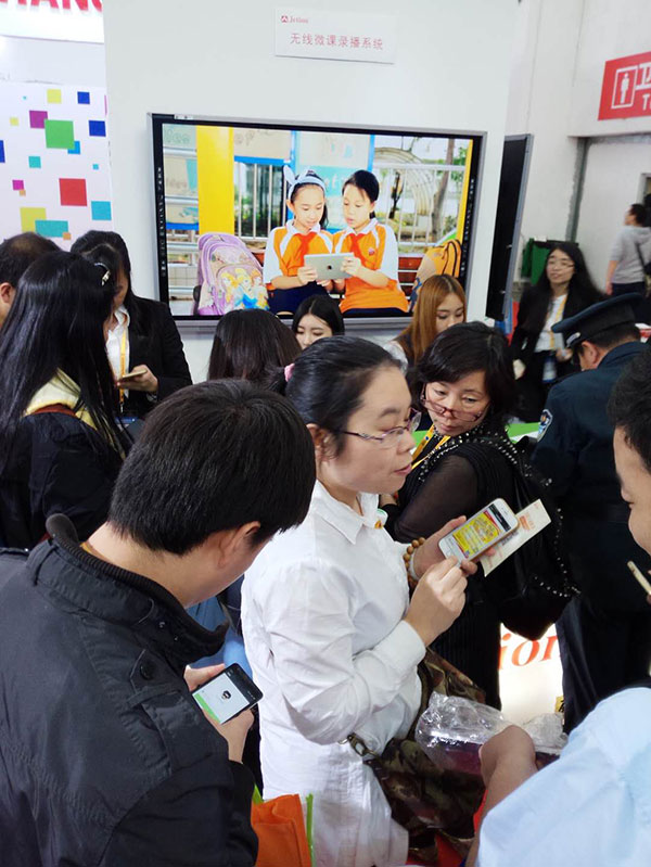展位現場有模擬課堂教學,書法課程演示,OCR功能演示等,結合全新800萬高清高速自動對焦備課寶,500萬高清高速互動寶,無線翻轉課堂平臺,看我學APP等多個新品發布。全新教學模式實現老師辦公輕松,學生學習主動。展臺結合平臺,實現教與學的互動,讓教與學不再局限于課堂,不再局限于模式,讓教與學擁有質般的飛躍。