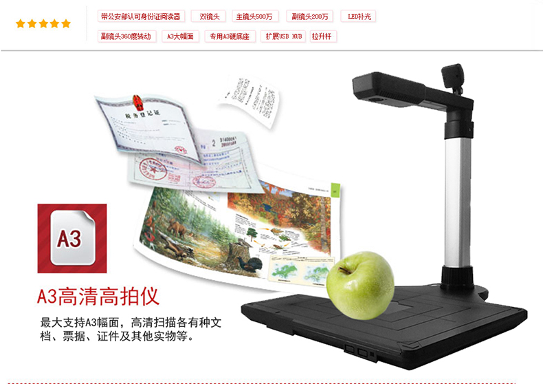 吉星數碼掃描儀政府、稅務機構專用版 a3幅面 800萬像素 帶硬墊底座