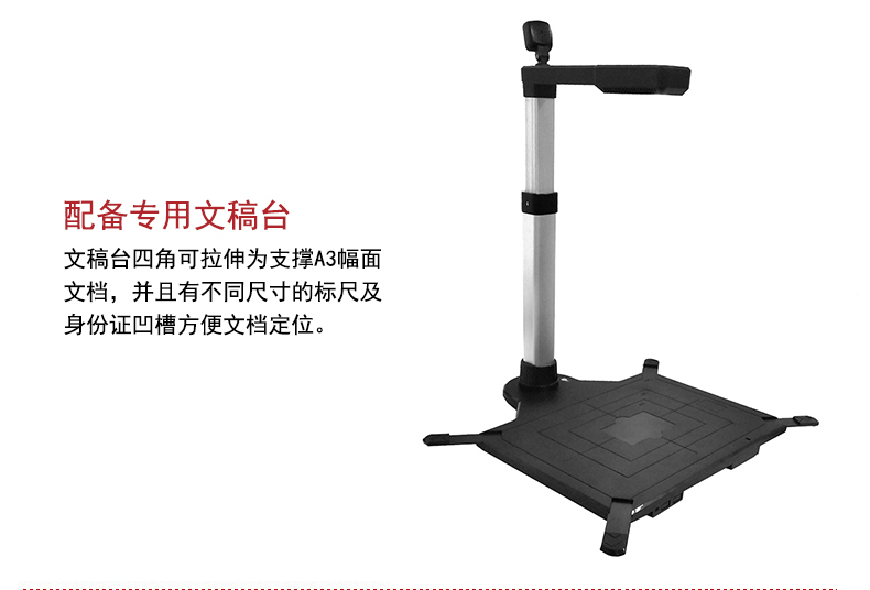 底座 固定可伸縮底座(底座可依據所掃描文件及物品的幅面范圍滑動調節)