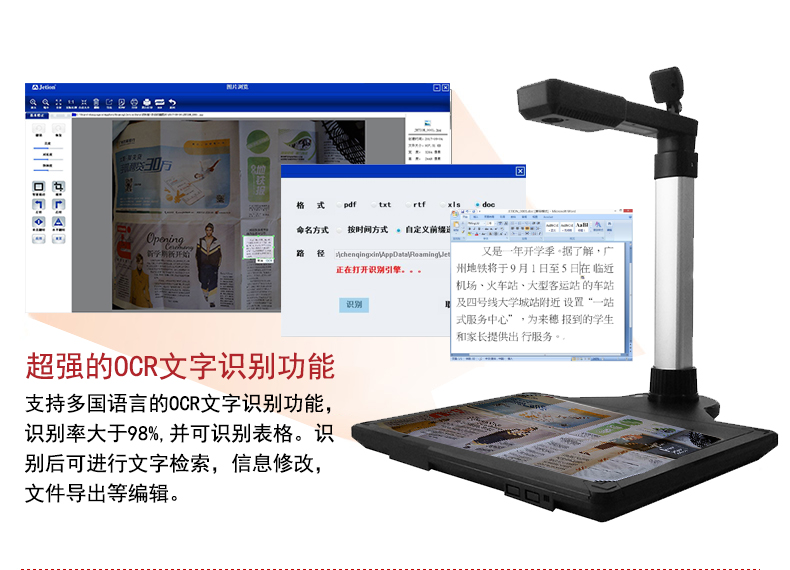 其他 支持OCR識別,對掃描件實現智能定位;支持自動剪裁,自動糾偏;