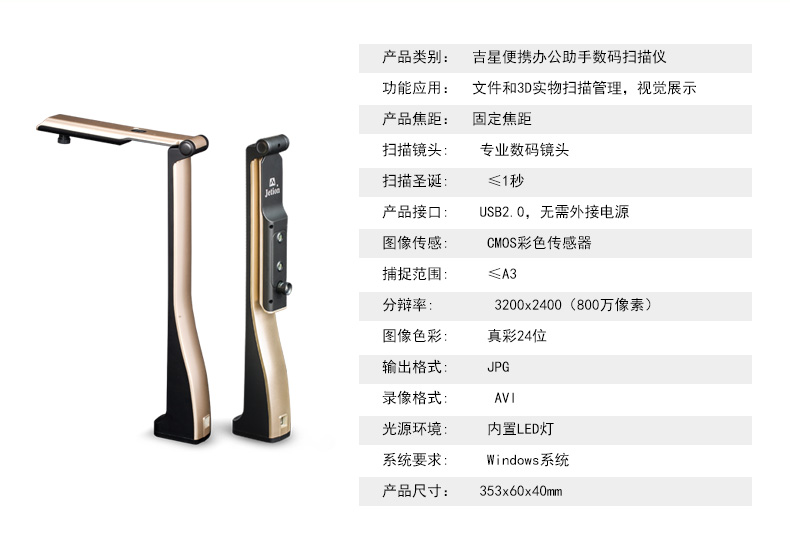 吉星便攜辦公助手800萬超高清,A3大幅面高拍儀 TM150
